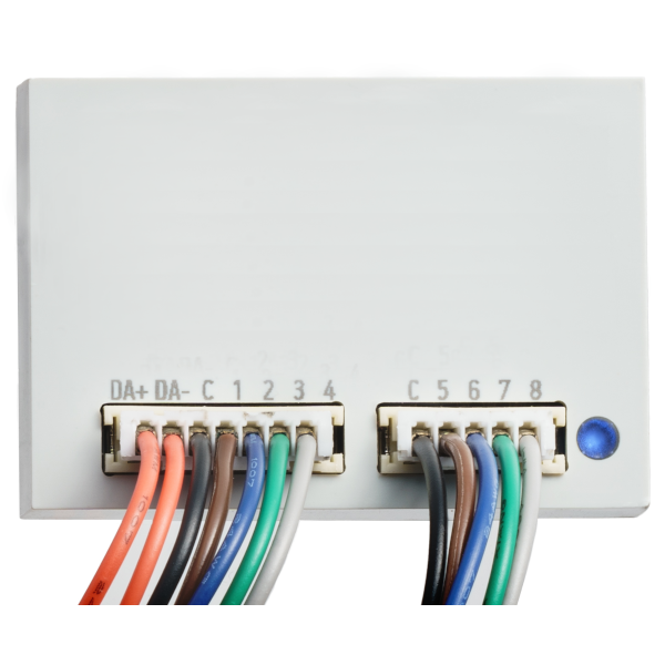 To moduł ośmiu wejść cyfrowych umożliwiający sterowanie urządzeniami DALI-2 za pośrednictwem standardowych przycisków instalacyjnych. Kompaktowa konstrukcja umożliwia montaż w standardowej puszce instalacyjnej Ø60 mm jak również w kasecie sterującej. Moduł jest ekonomiczną alternatywą dla modułów dotykowych i włączników DALI.